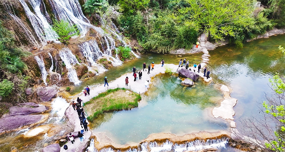 美人谷全长约 2 公里,四周群山环抱,奇石林立,瀑布成群,是典型的以山水景观为主的峡谷型生态休闲游览胜地。此次焕然一新的美人谷,对景区内各项设施进行了全方位升级。新增的观景步道,让游客能更近距离地亲近自然;露天舞台为各类表演提供了绝佳场地;流水瀑布在阳光的映照下如梦如幻;帐篷营地为游客打造了别样的户外体验空间;围炉煮茶区域则弥漫着惬意的氛围。而且,在设计过程中,景区尤为注重沉浸式体验,积极增加与游客的交流互动环节,让游客在感受自然风光魅力的同时,拥有更加丰富多彩的游玩经历。