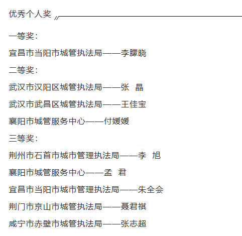 近日,2025年湖北省城市管理执法大练兵比武竞赛在湖北城市建设职业技术学院举办。来自新市街道综合执法中心的聂君祺凭借着扎实理论功底和现场出色表现荣获优秀个人奖,同时也是荆门市唯一获得优秀个人奖的选手。