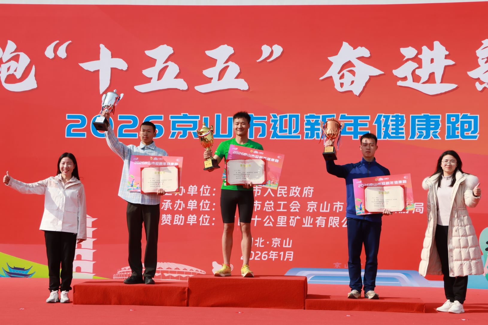 经过激烈角逐,李明、李劲松、张博涵获10公里健康跑男子组前三名,周雪莲、萧慧敏、彭小双获10公里健康跑女子组前三名。10公里健康跑男子组冠军李明兴奋地告诉记者:“跑步不仅是为了健康,也为我带来积极向上的情绪价值。能拿到第一非常开心,沿途观众和志愿者的加油声也格外热情。”女子组冠军周雪莲说:“第一次来京山参赛,感觉这里的市民很热情,赛道风景也很美。”
