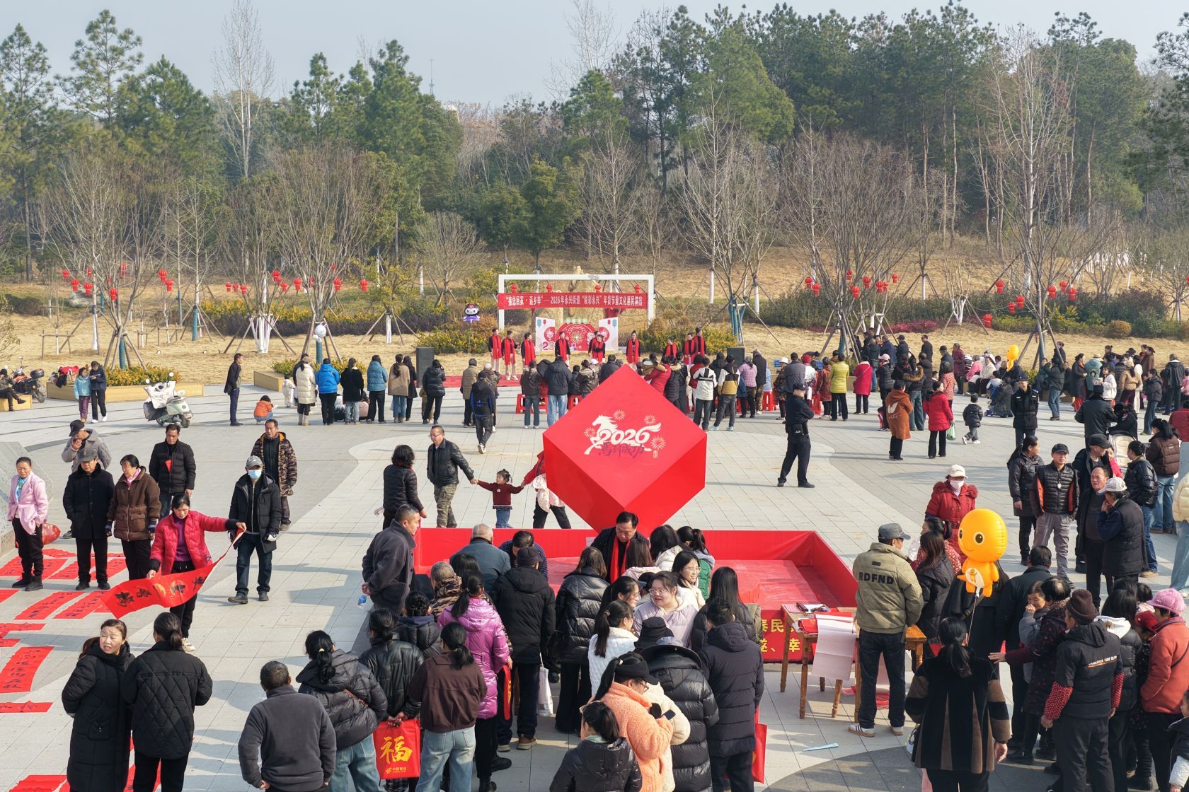 2月4日,永兴街道以“接您回家·返乡季”为主题,在镇生态公园举办“骏彩永兴”送春联赏园景新春促消费年货节活动。