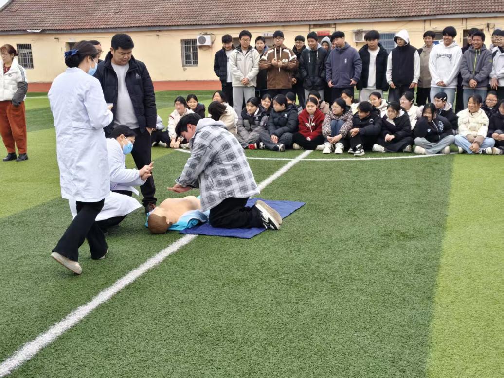 培训伊始,医护人员结合校园生活中可能遇到的突发状况,深入浅出地讲解了心肺复苏术(CPR)操作要点。在心肺复苏讲解环节,医护人员借助医用模拟人进行全流程示范,从手掌贴放、手臂发力,到仰头抬颏、口对口吹气,每一个动作都标准规范、细致到位。