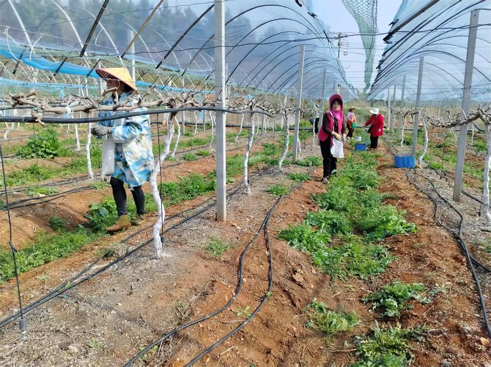 搭棚作业也为当地村民创造了家门口的务工机会。此次参与劳作的34名村民均为本村劳动力,他们配合默契,动作娴熟,在搭棚现场边干活边交流技术,既挣到了工钱,又学到了果园管理知识。“在自家门口干活,还能照顾家里,真是一举两得。”村民张大姐一边压膜一边笑着说道。