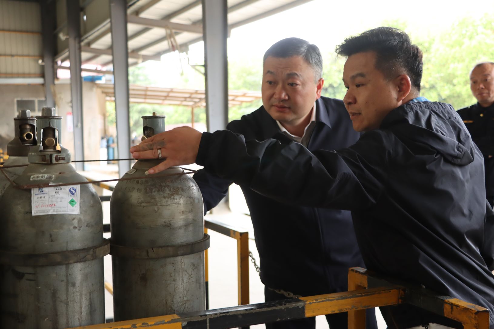 鲁雷先后前往京山东兴气体有限责任公司、京山信力鞋业有限公司、好又多超市(毓秀建材城店)、钦机加油站、金樽府建筑工地、金辉康养中心等地,详细了解安全生产管理制度落实、隐患排查整治、应急防范措施制定及值班值守安排等情况。每到一处,鲁雷都认真听取相关负责人汇报,仔细查看各场所消防设施配备、现场安全管理等关键环节,并针对检查中发现的问题,现场提出整改要求。